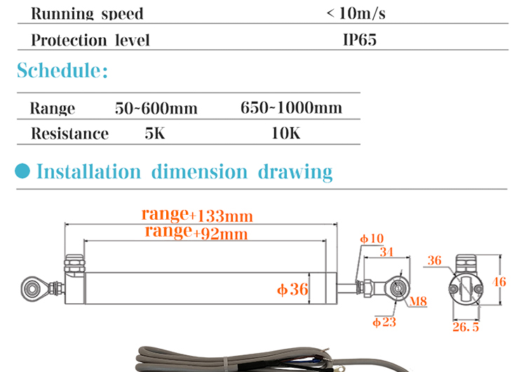 ·  Linear displacement sensor can be u